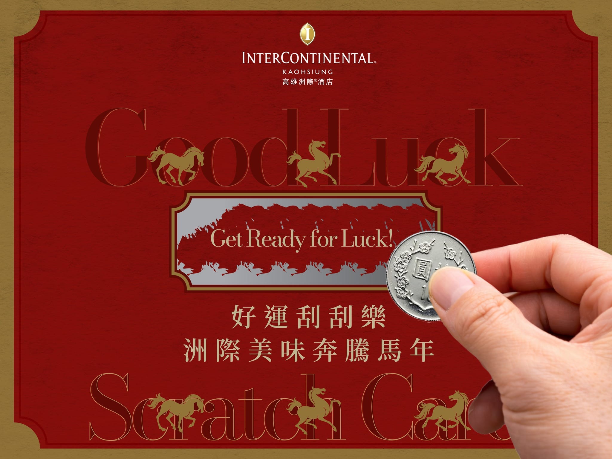 洲際美味奔騰馬年 迎來 2026 馬年,高雄洲際不僅以匠心入饌,更為全家相聚的席間準備了一份驚喜。活動期間於指定餐廳用餐,即可參加「好運刮刮樂 🧧」。獎項包含象徵吉利的 168、666、888 元餐飲優惠券,以及招牌餐飲招待券與洲際明星商品等,邀請你以好運開啟氣勢奔騰的一年。 瞭解更多